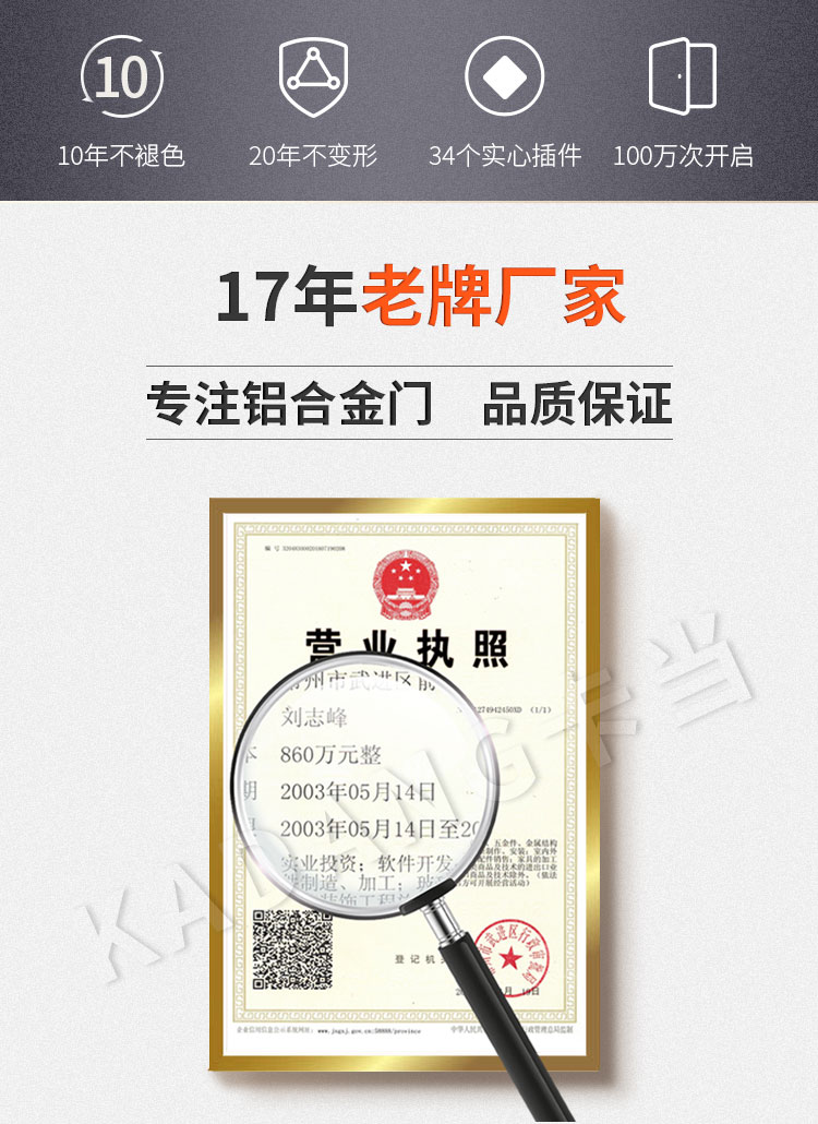 卡当肯德基门,铝合金单元门是大娘水饺,如家酒店等连锁企业指定供应商,荣获省放心消费单位.