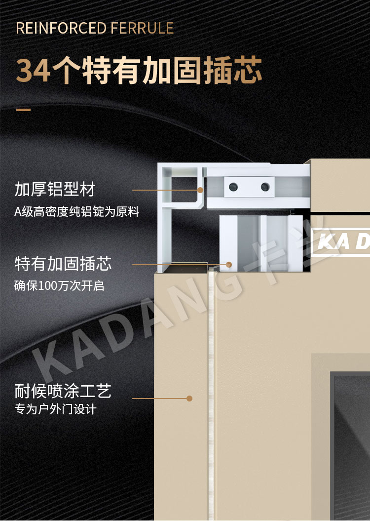 工艺结构 高频氩弧铝焊焊接+高强度特制型紧固件(保证门体牢固与耐用,不下垂不变形)