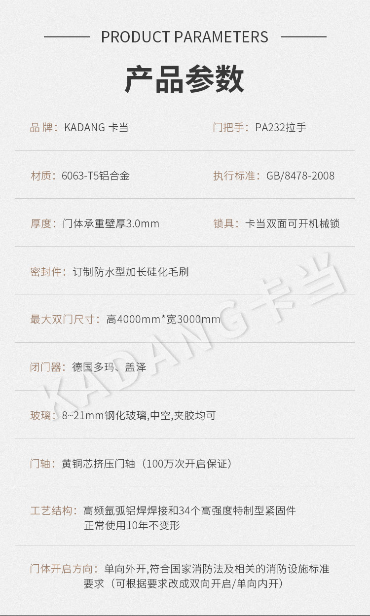 卡当公司技术达到可生产门尺寸: 高4000(mm)*宽3000(mm)